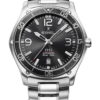 Men’s watch EBEL 1911, stainless steel case, Ø 42mm, anthracite galvanic dial with applied indexes with Super-LumiNova®, date window at 6:00, sapphire crystal with antireflective treatment underneath, stainless steel bracelet, folding clasp, comes with additional fabric strap (made with upcycled ocean-bound plastic) with cork insert, Swiss quartz movement, water-resistant up to 10 bar