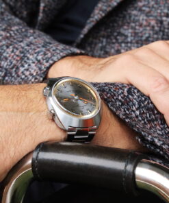 The 1969 Timer embodies Singer Reimagined’s high-watchmaking philosophy, featuring the latest version of the Agengraphe caliber, all within a compact 40mm case. The watch features a sun-brushed silver dial paired with a custom stainless steel case and bracelet by Singer. Their unisex size ensures they look stylish on both feminine and masculine wrists. The silver-colored sunray dial, matched with the tone-on-tone stainless steel case is very sleek and interacts beautifully with the light. This blend of silver and gray tones reflects the timeless designs of the 1969 era. The distinctive dial color also pays tribute to the original and highly coveted Track1 Launch Edition, the limited edition timepiece from 2017 that began the Singer Reimagined journey.