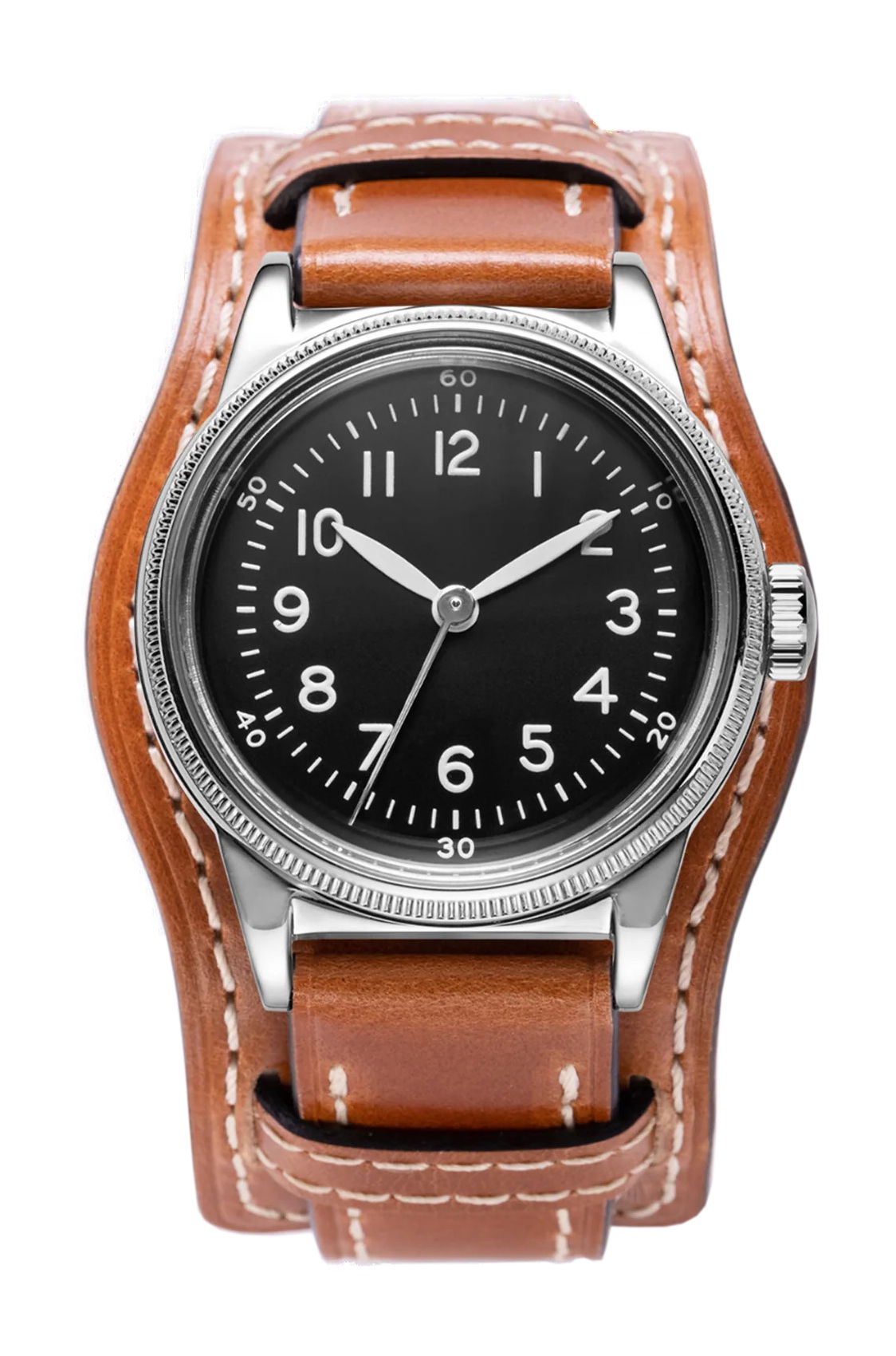The A-11 Type 44 by Praesidus is a tribute to the legendary original A-11 watches without attempting to replace the historical timepieces, which remain available in the market, each bearing its own historical significance. Instead, the Type 44 serves as a high-quality, contemporary homage to the legendary originals. Using a 1944 Waltham as a benchmark, Praesidus imagined the Type 44 with great attention to detail. Unlike the original A-11s, the Type 44 retains a unique feature: the absence of a counter-balance, reflecting the vintage Waltham’s wear and tear over time, as it had broken off over time. The Type 44 features a durable stainless steel case and a water resistance of 10 ATM, ensuring greater ruggedness than its predecessors. Its Swiss-made P024 movement guarantees precision and reliability that an 80-year-old original A-11 just cannot match. For those seeking a wearable, reliable A-11 that captures the essence of American ingenuity and the bravery of its creators, the A-11 Type 44 is the perfect choice. Available in a choice of 32mm and 38mm sizes, it features a brown bund leather strap, making it a timeless revival suited for the modern era. Proudly assembled in America, the A-11 Type 44 is a piece of history brought into the 21st century.
