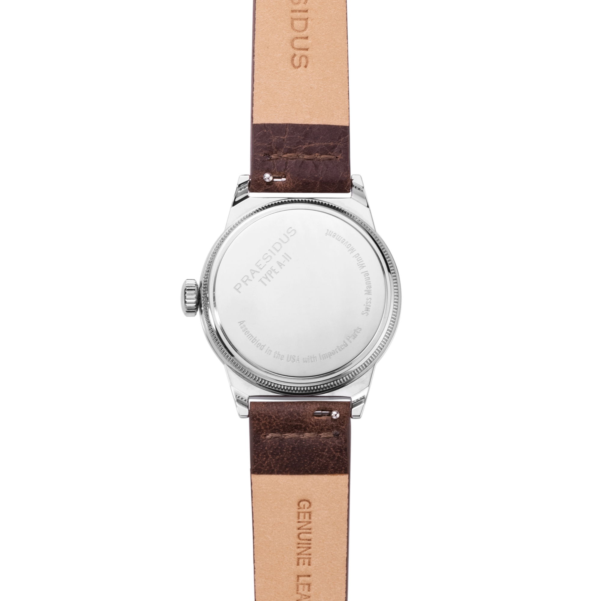The A-11 Type 44 by Praesidus is a tribute to the legendary original A-11 watches without attempting to replace the historical timepieces, which remain available in the market, each bearing its own historical significance. Instead, the Type 44 serves as a high-quality, contemporary homage to the legendary originals. Using a 1944 Waltham as a benchmark, Praesidus imagined the Type 44 with great attention to detail. Unlike the original A-11s, the Type 44 retains a unique feature: the absence of a counter-balance, reflecting the vintage Waltham’s wear and tear over time, as it had broken off over time. The Type 44 features a durable stainless steel case and a water resistance of 10 ATM, ensuring greater ruggedness than its predecessors. Its Swiss-made P024 movement guarantees precision and reliability that an 80-year-old original A-11 just cannot match. For those seeking a wearable, reliable A-11 that captures the essence of American ingenuity and the bravery of its creators, the A-11 Type 44 is the perfect choice. Available in a choice of 32mm and 38mm sizes, it features a dark brown leatehr strap, making it a timeless revival suited for the modern era. Proudly assembled in America, the A-11 Type 44 is a piece of history brought into the 21st century.