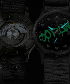 Swiss luxury watchmaker CORUM has expanded its prestigious Admiral collection by integrating ceramics into the design, a material with deep roots in the maritime industry due to its robustness and eco-friendliness. In embracing ceramics, known for its striking visuals, pleasant feel, and being lighter and more resistant than traditional 316L steel, CORUM marries the aesthetic of high-end watchmaking with practicality. Admiral 42 Ceramic collection is a testament to this fusion, featuring ceramic and gold models that epitomize the elegance of high-tech materials combined with the classic allure of gold. With options available in both stark black and pristine white ceramics, these watches are attached to a vulcanized rubber strap, ensuring comfort and durability. They are detailed with gold-colored indices and hands, enhancing their luxurious appearance, and are water-resistant up to 50 meters, making them suitable for seafaring activities. Additionally, CORUM introduces two unique models celebrating the energetic urban life of international ports, known for their dynamic street art. Featured here, a limited edition Admiral 42 “TAG” presents an understated yet sophisticated design with a full-black ceramic case and a black NATO strap. Its special feature is the CORUM TAG logo which glows in low-light conditions, offering a subtle yet impactful statement. Powering these timepieces is the precise CO 395 automatic movement, ensuring 40 hours of power reserve and operating at 28,800 vibrations per hour, which guarantees accuracy. The inclusion of a sapphire crystal case back reveals the intricate workings of the movement, underscoring CORUM’s dedication to transparency and fine craftsmanship.