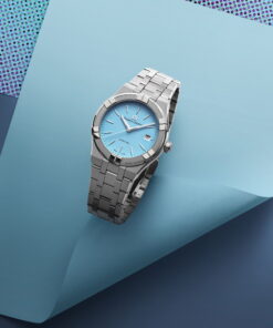 Maurice Lacroix’s design team, inspired by the serene beaches and lively nights of Florida, presents three vibrant AIKON Quartz models. These watches evoke the essence of fun-filled days and starry nights, perfect for any occasion. The AIKON Quartz collection features two 35 mm models with diamond-set indexes and a 40 mm model with sleek rhodium-plated hour markers. The 35 mm versions are available in Sunset Pink and Deep Sky Blue, while the 40 mm watch sports a Deep Sky Blue dial. Each watch offers a blend of elegance and sophistication, suitable for both day and night. These watches feature a stainless steel case and a 5-row stainless steel bracelet with a refined mix of brushed and polished surfaces. The Easy Strap Exchange system allows for easy strap changes without tools.