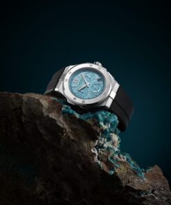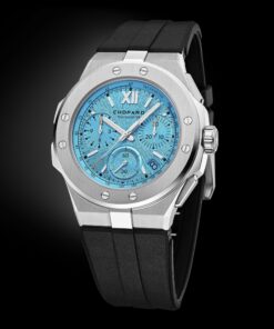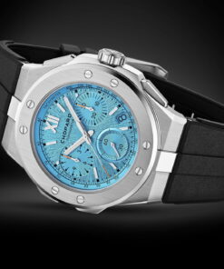 The Chopard Alpine Eagle XL Chrono has recently expanded its palette with the introduction of a ‘Maritime Blue’ version. This precision chronograph showcases a 44 mm diameter case made of Chopard’s unique Lucent SteelTM, a steel type that’s both light-reflective and boasts an 80% recycling rate. The captivating “Maritime Blue” dial, inspired by both the Mediterranean Sea and the Alps, features a sunburst pattern reminiscent of an eagle’s iris. Powering this exquisite timepiece is the Chopard 03.05-C chronometer-certified movement, which is underpinned by three patents, emphasizing its innovative accuracy and functionality. This includes a flyback function, which ensures efficient timing. One of the standout features of the Alpine Eagle XL Chrono is its robust rubber strap, which, while being water-resistant and comfortable, retains the collection’s signature aesthetic. Chopard’s history of using rubber in its designs dates back to 1995, when they first incorporated rubber treads into the straps of their Mille Miglia chronograph collection. The dial of the Alpine Eagle XL Chrono is meticulously crafted for legibility, featuring snailed counters, hands, and hour-markers coated in a durable and luminous Grade XI Super-LumiNova®. It also boasts a tachymeter scale for precise speed measurement. The Chopard Alpine Eagle collection itself is a contemporary nod to the St. Moritz watch from the late 1970s by Karl-Friedrich Scheufele, drawing rich inspiration from nature. This is evident in features like its compass rose engraved crown and its distinctively textured dial.