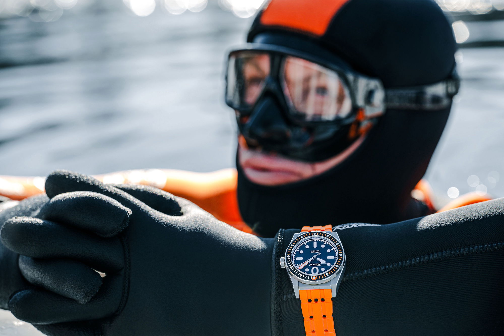 The Raketa Amphibia resurfaces with a bold new update, continuing a deep-sea legacy forged on the icy shores of Saint Petersburg. Built by the storied Raketa Watch Factory—making reliable timepieces for divers, sailors, and submariners since the Cold War— Amphibia is no nostalgia trip. It’s a fully modern dive watch engineered to meet today’s underwater standards while staying true to its DNA. Designed to perform at depths of up to 200 meters, the Amphibia features a robust stainless steel case, a screw-down crown for watertight security, and a unidirectional bezel with tactile, audible clicks for confident dive-time tracking. A high-contrast dial with bold, luminescent hands and indexes ensures instant legibility in murky waters. True to function, the dial leans on orange for key details—science-backed as the most visible color in deep water. The silicone strap is as thoughtful as it is functional, with full-length perforations to accommodate wetsuits and minimize water retention. A quick-release system makes swapping to the included black strap a breeze, keeping versatility front and center. Powering the Amphibia is Raketa’s in-house automatic movement. Visible through the caseback, the rotor is engraved with a mermaid in the style of Russian folklore—a poetic nod to the deep-sea dreamers among us.
