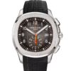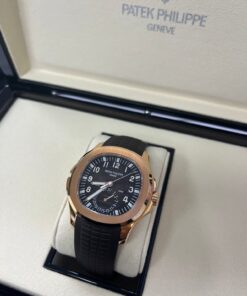 Aquanaut Time Travel Rose Gold 40mm Brown Dial 40.8mm 18K rose gold case, sapphire-crystal back, brown embossed dial with gold applied numerals and luminescent hour markers, caliber 324 SC FUS self-winding movement with Aquanaut Travel Time dual time zone mechanism indicating local and home time, local and home day/night indication in apertures, local date by hand, sweep seconds hand, approximately 35-45 hours of power reserve, brown Tropical composite strap, Aquanaut fold-over buckle. Water-resistant up to 120 meters.