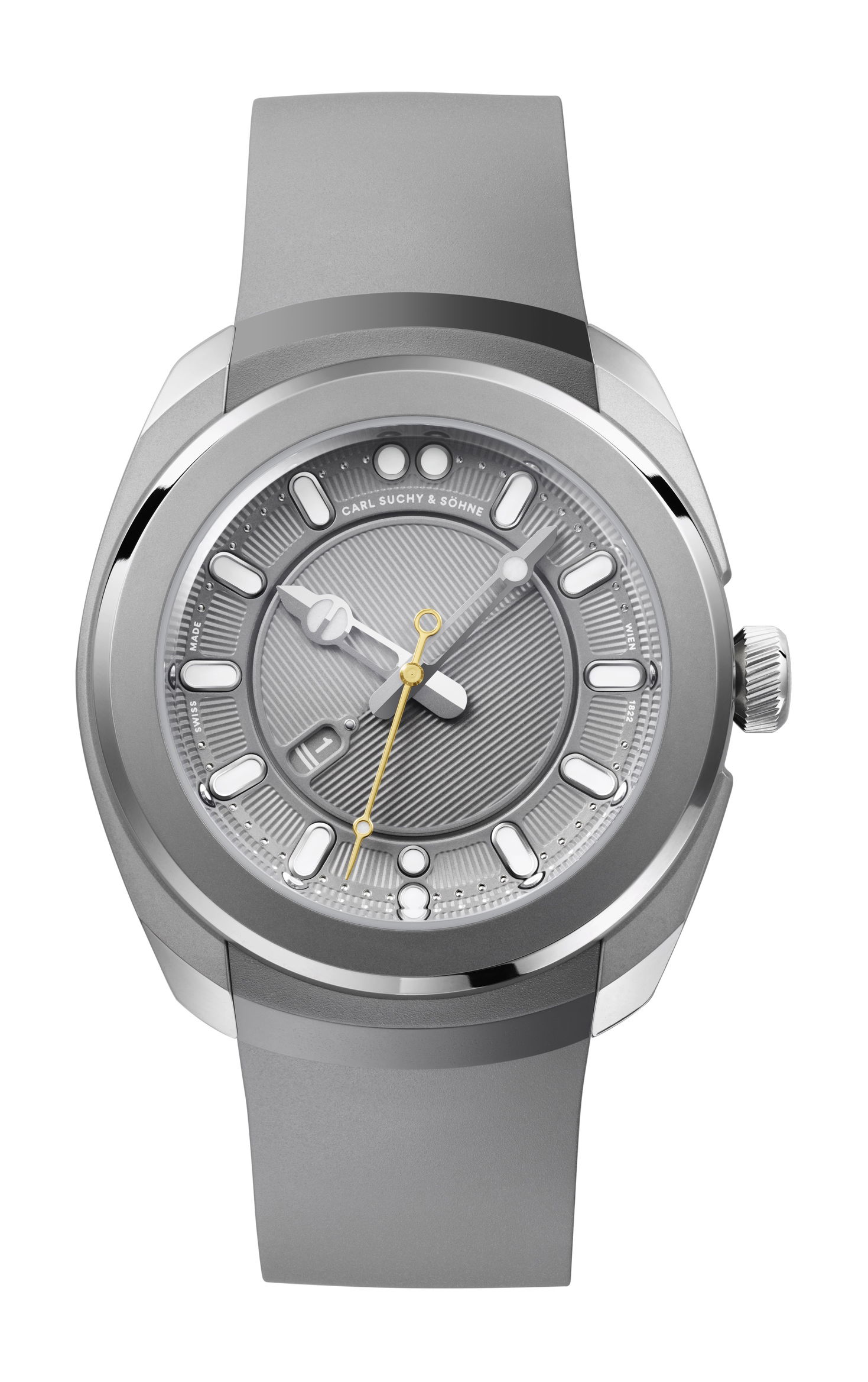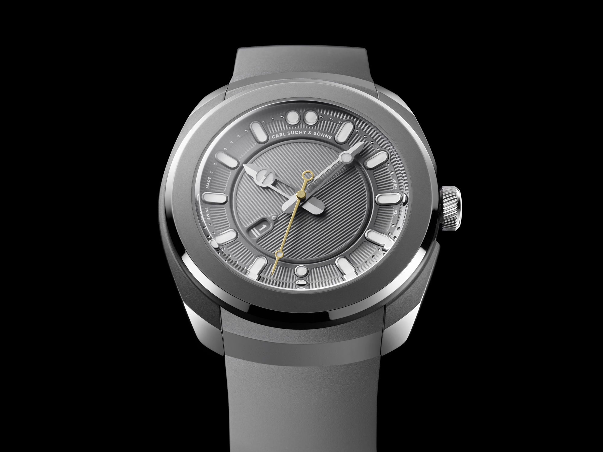 Carl Suchy & Söhne introduces the Belvedere Titan as the latest addition to its successful Belvedere Collection, following the well-received launch of the Belvedere in 2023. The Belvedere Titan embodies a blend of modern sophistication and Viennese cultural heritage, featuring a lightweight and durable titanium construction ideal for active lifestyles. Its design highlights sportiness through color and material choices while maintaining elegance, with a golden and a unique date display adding functionality and vibrancy to the dial. The watch is powered by the CSS201 automatic movement, created by Swiss master watchmaker Marc Jenni, ensuring precise timekeeping. Attention to detail is evident throughout, with the golden rotor featuring micro-engravings of the iconic Belvedere Palace and a baroque garden motif on the integrated rubber strap.