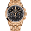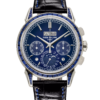 Heir to a Patek Philippe classic launched in 1941, this perpetual calendar chronograph features a timeless yellow gold case and a highly legible silvery opaline dial. The manually wound movement combines traditional construction with six patented innovations and an exceptionally slim calendar mechanism.