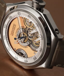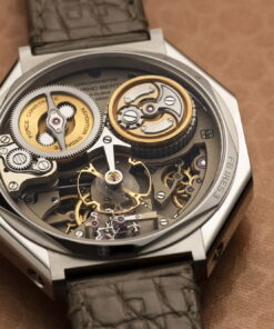 The Chronomètre FB RES Jubilee Edition has been released to celebrate the 70th anniversary of Sincere Haute Horlogerie, a long-time partner of Chronométrie Ferdinand Berthoud. This exclusive series is limited to just three pieces, featuring a platinum octagonal case and a satin-brushed salmon dial. Designed in collaboration with Sincere, each watch is engraved with Sincere’s logo at nine o’clock, symbolizing infinity. The timepiece includes an advanced movement system with a fusee-and-chain mechanism for constant force and a one-second remontoir d’égalité for precise timekeeping, delivering a deadbeat seconds display. The skeletonized dial and hand-polished angles showcase the artistry and craftsmanship, requiring over 250 hours to complete.