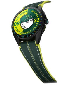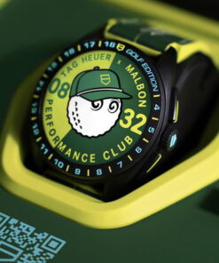The TAG Heuer Connected Calibre E4 45MM x Malbon Golf Edition is a testament to the synergy between Swiss luxury watchmaking and modern golf lifestyle, brought together by TAG Heuer and Malbon Golf. This collaboration merges TAG Heuer’s pioneering status in luxury connected watches, especially within the golfing community since 2015, with Malbon Golf’s innovative and fashion-forward approach to golf since its inception in 2017. Both brands champion a unique ethos of innovation, refusing to adhere to trends and instead forging their own paths. This partnership has resulted in a sophisticated and stylish timepiece tailored for golf enthusiasts who appreciate both form and function. The watch enhances the golfing experience by seamlessly integrating with the TAG Heuer Golf application, by over 650,000 enthusiasts. It offers a transformative way to play golf, tracking every shot from tee to green, including putting, and providing tailored club recommendations based on the player’s performance. This allows players to focus on the game without manual scorekeeping or device interaction. The TAG Heuer Connected Calibre E4 45MM x Malbon Golf Edition is designed to be as functional off the course as on it, boasting a full day of battery life and a suite of sensors and apps to cover a wide range of activities beyond golf. Aesthetically, the watch features a vibrant design with turquoise blue and green hues that echo Malbon Golf’s branding, along with a rubber and calfskin strap in bright yellow and green tones. It introduces two unique watch faces that celebrate the collaboration, including an animated design featuring Malbon’s character. The packaging further highlights the collaboration’s spirit, complete with golf balls bearing the logos of both brands. Beyond the watch, TAG Heuer and Malbon Golf have expanded their partnership to include a capsule collection of golf-inspired merchandise, featuring performance-focused apparel and accessories designed to complement the watch. This collection is available through Malbon’s retail channels, enhancing the collaboration’s reach within the golfing community.