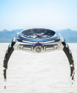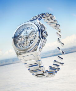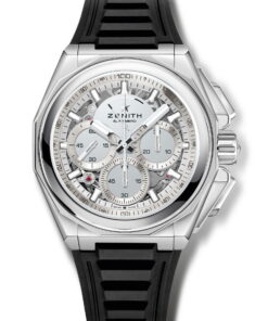 Step into the future of timekeeping with the ZENITH DEFY Extreme Mirror. This watch is a marvel of design and engineering, boasting a unique mirror finish that reflects the world around it, achieving an exceptional ultramodern look. Crafted with a geometric precision that allows it to stand out and blend in simultaneously, the DEFY Extreme Mirror challenges the boundaries between timepiece and art. At its heart, the DEFY Extreme Mirror features a high-frequency engine, delivering astonishing performance with a 1/100th of a second chronograph. The watch’s durability and design are inspired by the very elements it’s built to withstand, embodying resilience and adaptability. The watch’s allure is further heightened by its paradoxically eye-catching yet stealthy exterior. The stainless steel case and integrated bracelet are polished to perfection, creating a seamless, chrome-like sheen. The mirrored sapphire crystal dial adds to the mystique, with a translucent reflection that captivates the gaze, complemented by satin-brushed metallic elements for clarity. Visible through the open dial and case back, the El Primero caliber operates with two independent escapements, pulsating at rates of 5Hz for timekeeping and 50Hz for the chronograph function, setting a new standard for precision. Completing its sophisticated look are the versatile black Velcro and rubber straps, easily interchangeable with the steel bracelet for a personalized touch.
