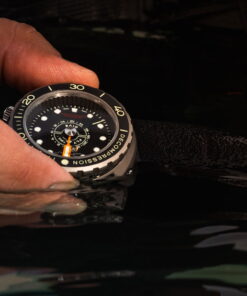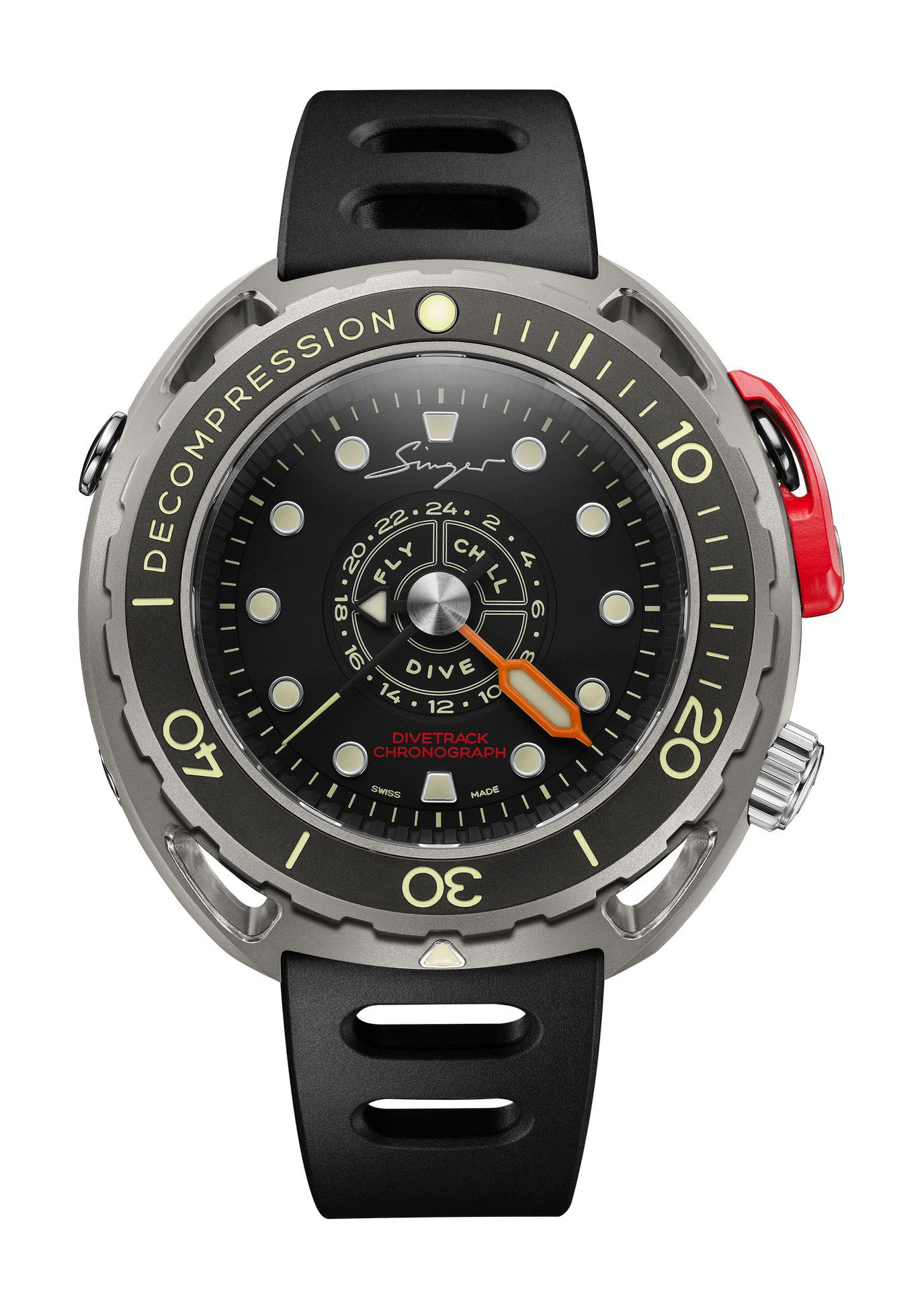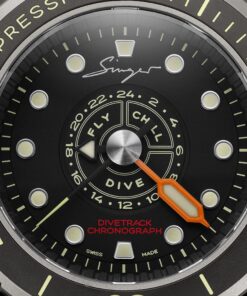 The Singer Divetrack is a pioneering timepiece that revolutionizes the world of diving watches. Manufactured with precision engineering and innovative design, the Divetrack debuts with a central chronograph function, elevating diving precision and usability to unparalleled heights. Designed to meet the demands of discerning divers and watch enthusiasts alike, the Divetrack embodies Singer’s commitment to innovation and functionality. Its standout feature, the Central Sub-Counter, assists divers in managing surface intervals and post-dive safety, ensuring a seamless and secure diving experience. Made with Grade 5 Titanium and three sapphire crystals, the Divetrack combines durability with clarity, making it the ideal companion for underwater exploration. User-friendly features, including a robust waterproof case and easy-to-operate pushers, ensure effortless operation both underwater and on the surface.