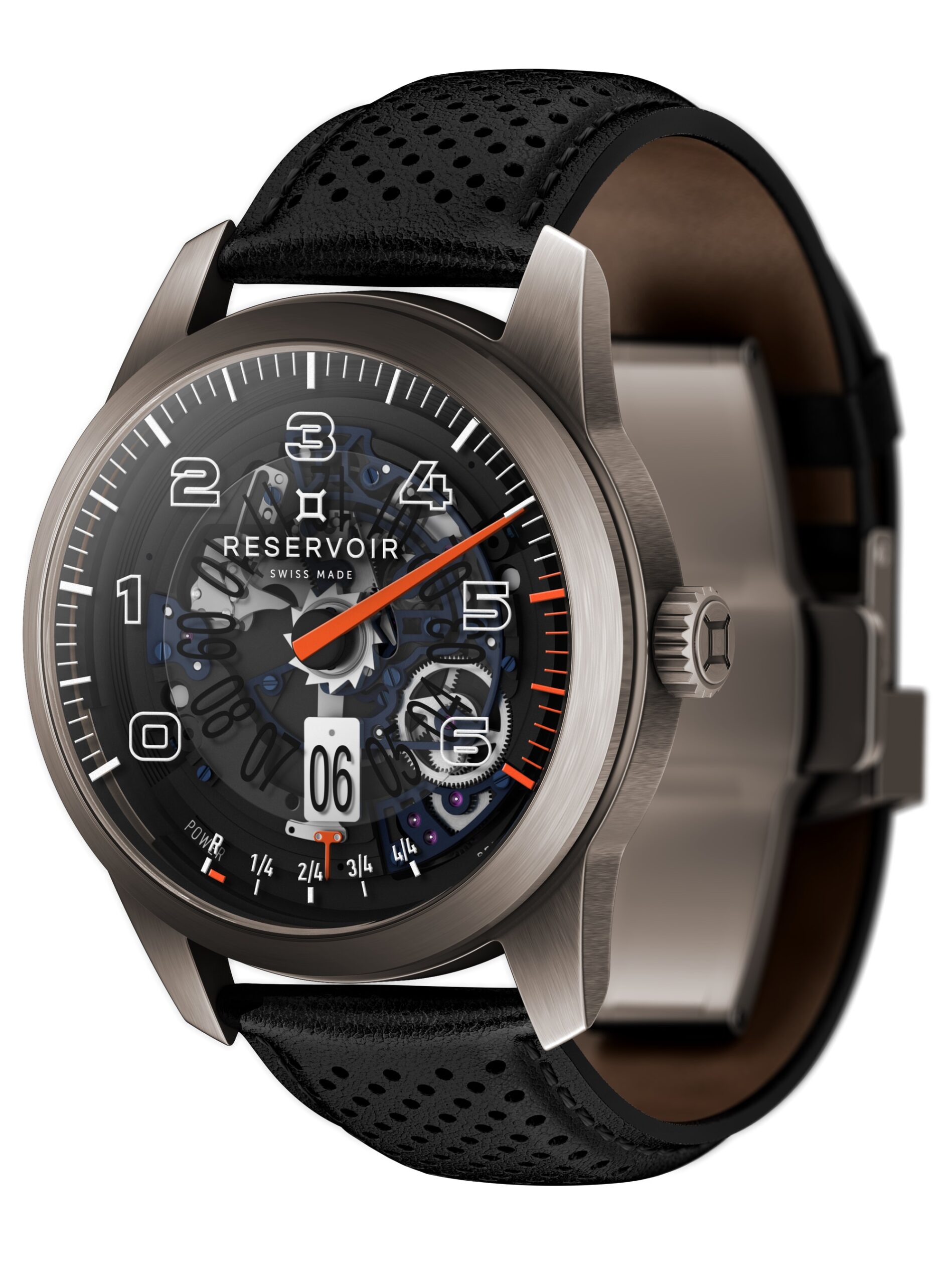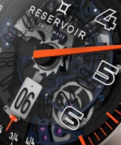 Picture this: you’re behind the wheel of a sleek sports car, pushing it to the limit. That feeling of pure speed and precision, with every unnecessary detail stripped away – that’s the essence of the GT Tour Skeleton. Now, imagine a dial that’s as clear as day, leaving you with an extraordinary view of the inside workings of the watch. And check out that retrograde minute hand, decked out in vibrant orange, like it’s straight out of a race car dashboard. The bridges are painted a deep, mysterious blue, making them stand out against the brushed steel. If you look closely, you’ll notice the perfectly blued screws and the intricate pattern on the differential wheels – a treat for racing enthusiasts. Now, let’s talk about innovation. The hour cartridge glows in white SuperLuminova, making sure you can check the time even in the darkest of nights. And the hour indication disc? It’s made of transparent Plexiglas, adding a touch of modern elegance to this racing-inspired timepiece. The GT Tour Skeleton comes in a beautiful wooden box, along with an extra NATO strap.