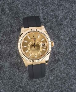 This Rolex Sky-Dweller ref 326238 is a masterpiece of functionality and style. Crafted in 18k yellow gold with a striking champagne dial, it exudes luxury while offering impressive versatility. The innovative annual calendar and dual time zone complications make it perfect for frequent travelers, while luminous hands and indices ensure easy readability day or night. Powered by the automatic Caliber 9001, this watch boasts a 72-hour power reserve, maintaining precision even through long weekends. With a robust 42mm case and water resistance up to 100 meters, this Sky-Dweller combines elegance and reliability, embodying the best of modern Rolex engineering.