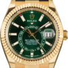 This Rolex Sky-Dweller ref. 336933 (2024) combines technical innovation with refined elegance. Its black dial features an annual calendar and dual time zone display, complemented by a fluted, bidirectional Ring Command bezel for intuitive function adjustment. Crafted in stainless steel and 18k yellow gold, the Jubilee bracelet enhances both style and comfort. Powered by the Caliber 9002 automatic movement, this Sky-Dweller delivers precise performance and a 72-hour power reserve, making it an exceptional choice for travelers who value sophistication and reliability.