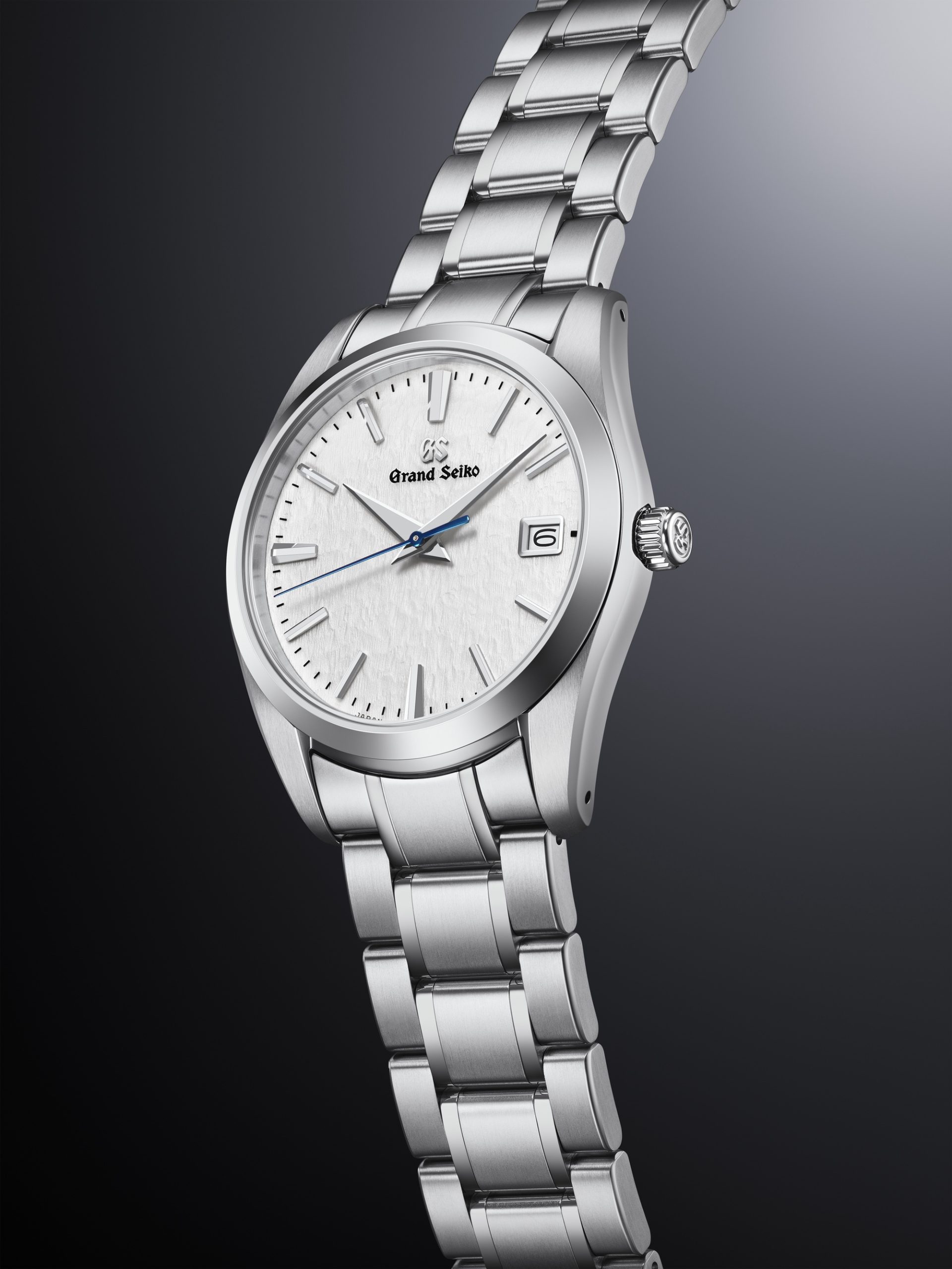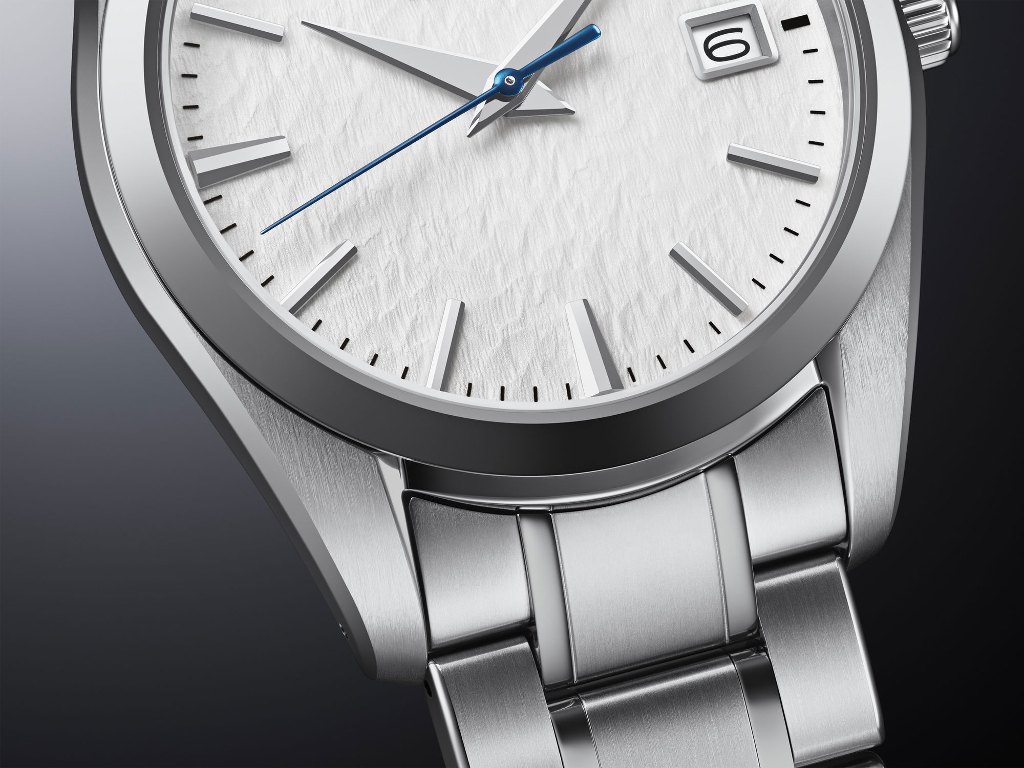 The Grand Seiko SBGX355 is a 37mm watch made from High-Intensity Titanium, making it a lightweight and highly wearable timepiece suitable for both men and women. It features water resistance up to 10 bar and is designed for everyday use. This model is fitted with a titanium bracelet with a three-fold clasp and a push-button release mechanism. It boasts the iconic Snowflake dial pattern that mirrors the texture of snow, which is a signature design element of Grand Seiko, originally introduced in the SBGA211. The SBGX355 is distinguished by its perfectly polished hands and markers, including an individually blued seconds hand. It is powered by a quartz caliber, ensuring an impressive accuracy of ±10 seconds per year, and includes a date complication.