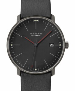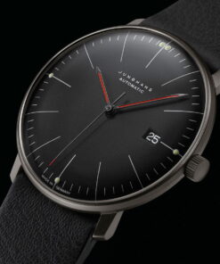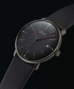 Junghans has released a new version of the classic Max Bill Automatic watch, the Max bill Automatic Bauhaus in black, which upholds the minimalist design principles of Bauhaus advocate Max Bill. The watch features a black PVD-coated stainless steel case and a matte black dial with steel-grey hour markers accented by luminous red hands. It maintains its allegiance to the Bauhaus aesthetic with subtle design cues like the Bauhaus-structured transparent case back. The Max bill Automatic Bauhaus is equipped with the Caliber J800.1, ensuring reliability with a 38-hour power reserve and an automatic rotor that keeps it running with regular wear. Designed for comfort, the watch includes a velvety case and a comfortable leather strap, aiming for a high-quality tactile experience. Functionality is key, with the watch boasting a 5 bar water resistance, a PVD coating, and a hard-coated, anti-reflective crystal, making it durable for everyday use. True to Bauhaus philosophy, it combines timeless design with practicality, aligning with Max Bill’s ideal of a watch that transcends trends and remains relevant across time.