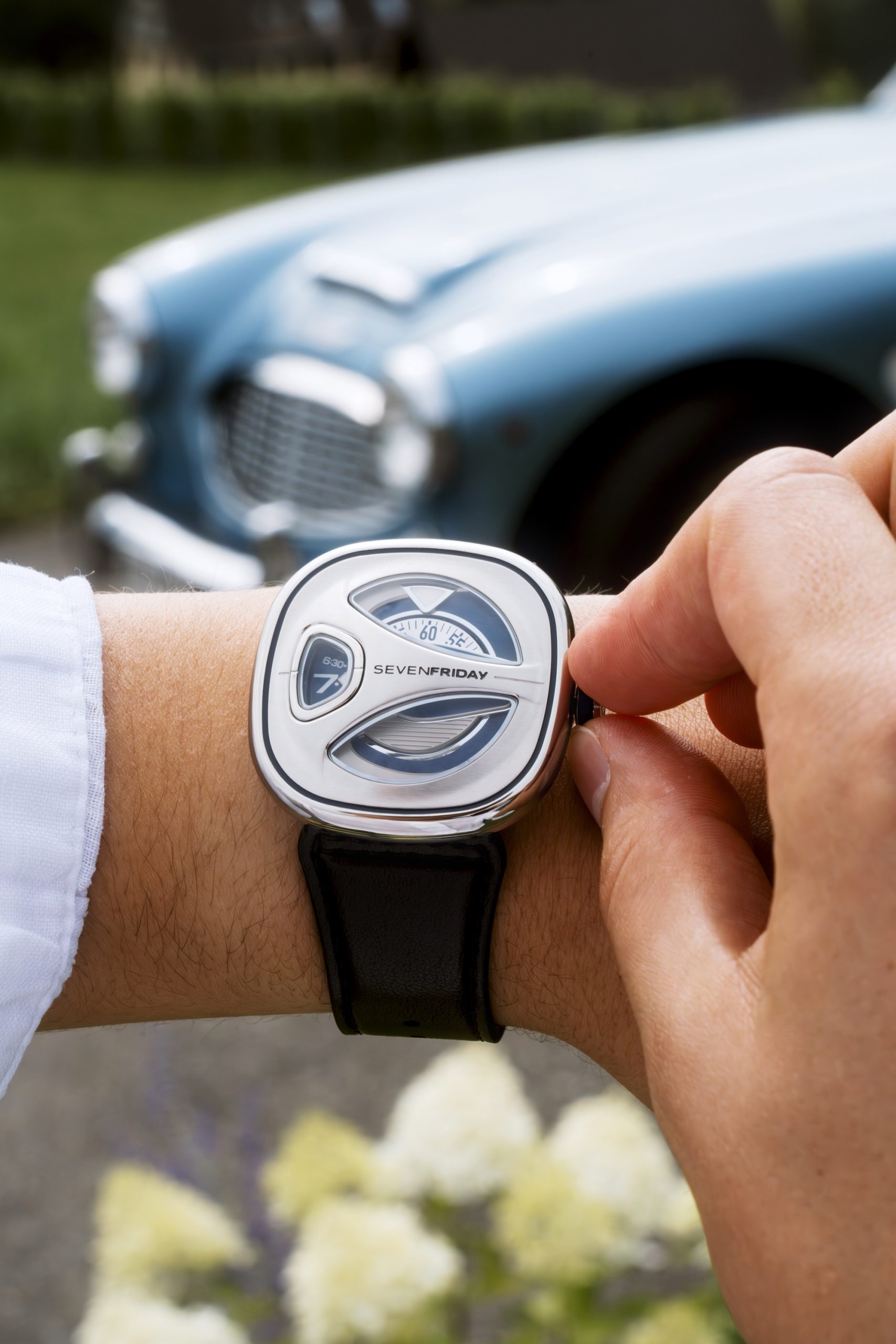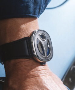 It’s been ten years since SEVENFRIDAY launched the M-Series, a design that has achieved iconic status and remains as popular today as it was at its debut. This year, SEVENFRIDAY revisits this classic with the introduction of the ME-Series. Originally released in 2014, the M-Series was notable for its disk reading system, 47mm size, and intricate details, quickly winning over design enthusiasts. Inspired by Raymond Loewy, a pioneer in industrial design known for his ‘Most Advanced Yet Acceptable’ (MAYA) principle, SEVENFRIDAY’s head designer, Arnaud, has infused this philosophy into the ME-Series. The ME-Series continues SEVENFRIDAY’s tradition of retro-futuristic industrial design, featuring a more compact 44mm case with a sleek, aerodynamic shape. New features include a butterfly clasp on a leather band, a silicone grip crown, and three cut-out sapphire glass pieces that enhance its modern look. Despite these updates, the ME-Series retains the familiar disk system from the M-Series, balancing innovation with familiarity. The ME-Series is available in two variations: one in stainless steel with blue lacquer accents and another with gold PVD and green lacquer details, each available on either a matching leather strap for a steel Milanese bracelet