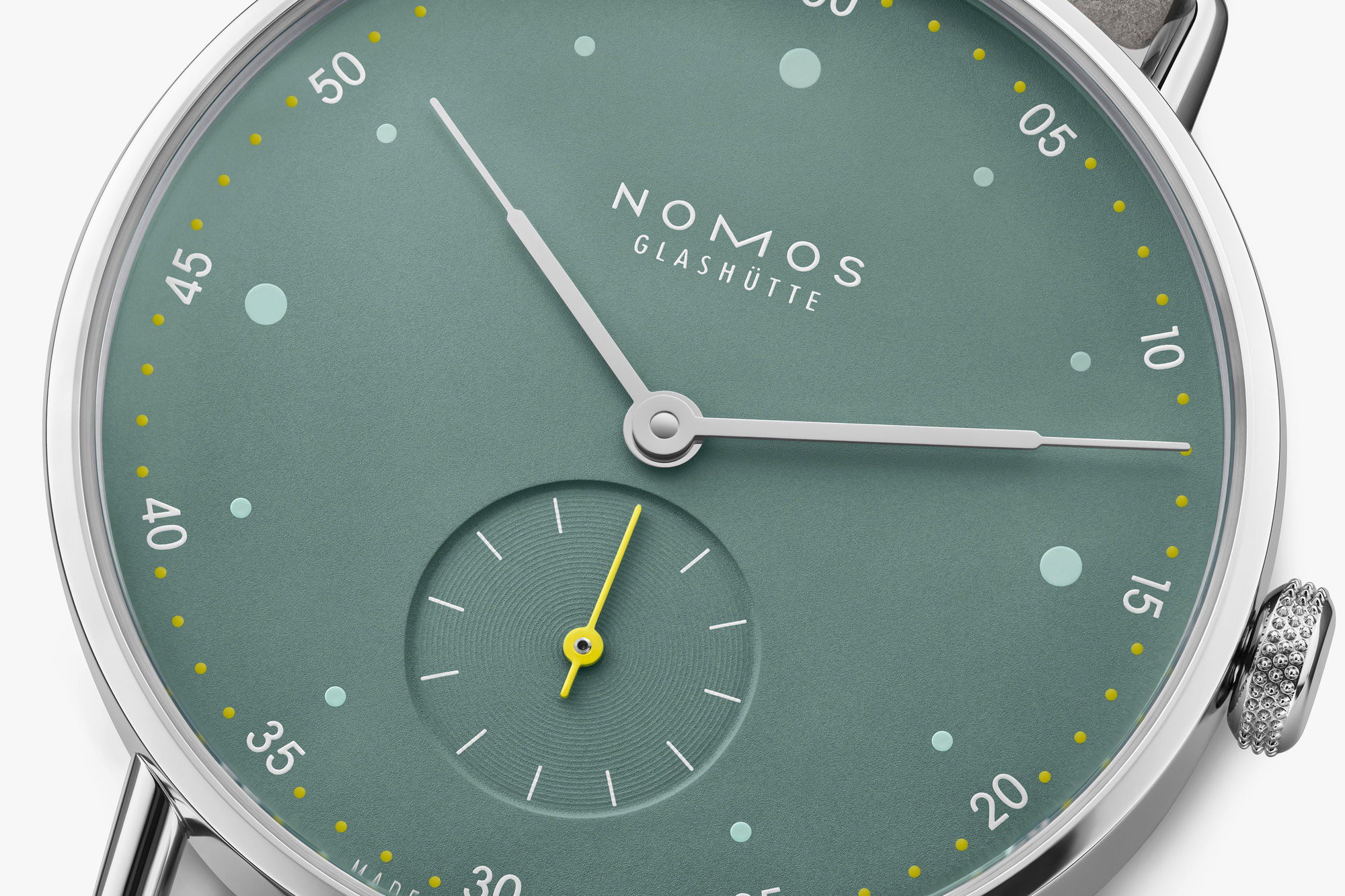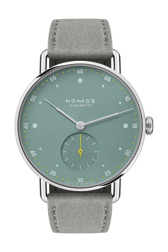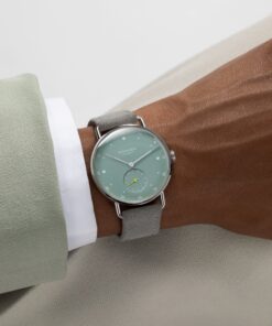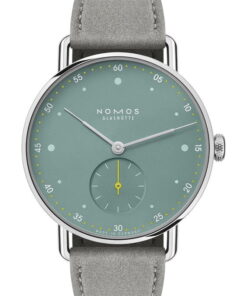 Nomos Glashütte’s Metro 33 watches, designed by Mark Braun, embody urban elegance and style, celebrating a blend of functionality and design. Inspired by cityscapes, each watch tells a distinct city story, using colors and materials that mirror elements like skyscrapers, red brick buildings, and city parks. For instance, the watches use silver to reflect skyscrapers, muted red to evoke red brick buildings, and sage to symbolize city parks. The collection, marking its tenth anniversary, showcases watches in stainless steel that have intricately curved sapphire crystal glass, quick-change spring bars, and a uniquely adorned Metro crown, highlighting the exquisite craftsmanship. They feature playful details such as colorful hands and minute markers, enhancing their modern charm. Each watch in the Metro 33 series is paired with a light gray vegan velour leather strap. They are powered by the hand-wound Alpha movement from Nomos, ensuring reliability and precise timekeeping, tailored to meet the demands of a bustling urban lifestyle. Braun sees these new models as embodiments of contemporary elegance—smart, playful, and energetic.