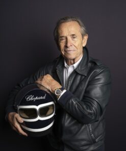 Chopard celebrates the iconic racing figure Jacky Ickx with the Mille Miglia Classic Chronograph JX7, a collaboration between Chopard Co-President Karl-Friedrich Scheufele and Ickx himself. The watch pays homage to Ickx’s legacy with design elements inspired by his legendary helmet, notably its midnight blue color and distinctive white stripes. Limited to 250 pieces for the Lucent Steel™ version and 50 pieces for the two-tone version with an ethical 18-carat yellow gold bezel. The dial features Super-LumiNova® for visibility and incorporates nods to Ickx’s victories at Le Mans. The ‘glass box’ sapphire crystal provides depth to the dial, while the exhibition case-back reveals the precision Swiss chronometer movement. The rubber strap, reminiscent of 1960s Dunlop racing tires, now comes in a matching blue hue. This collaboration symbolizes a 36-year friendship and a shared passion for motor sports and timepieces.