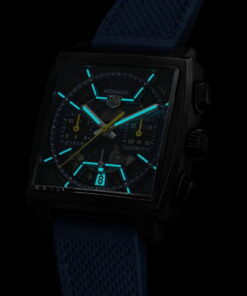 The TAG Heuer Monaco Chronograph in dark blue is a modern tribute to the collection’s historic past and racing heritage Originally introduced in 1969, the Monaco quickly became iconic for its bold square shape, left crown, and blue dial. Its association with actor Steve McQueen in the film “Le Mans” further cemented its status in motor racing culture. The latest model has a dark blue theme inspired by the Monaco Grand Prix and the Mediterranean coast. This edition has a titanium case and a skeleton dial that reveals the Calibre Heuer 02 movement, with an 80-hour power reserve. The touches of yellow on the hands and markers evoke the high-speed sparks of racing cars, while the overall design embodies TAG Heuer’s blend of mechanical beauty and functional precision. The Monaco Chronograph continues to honor the brand’s deep-rooted connection to sports timekeeping, symbolizing both the thrill of motorsport and the finesse of Swiss craftsmanship.