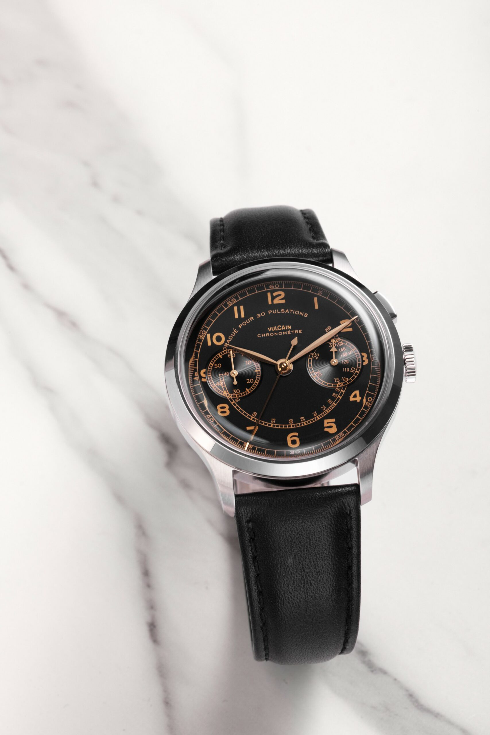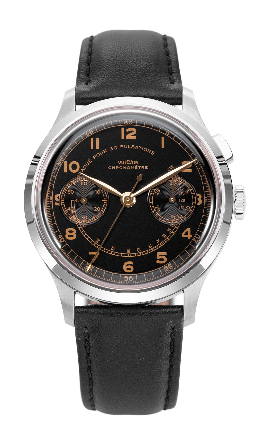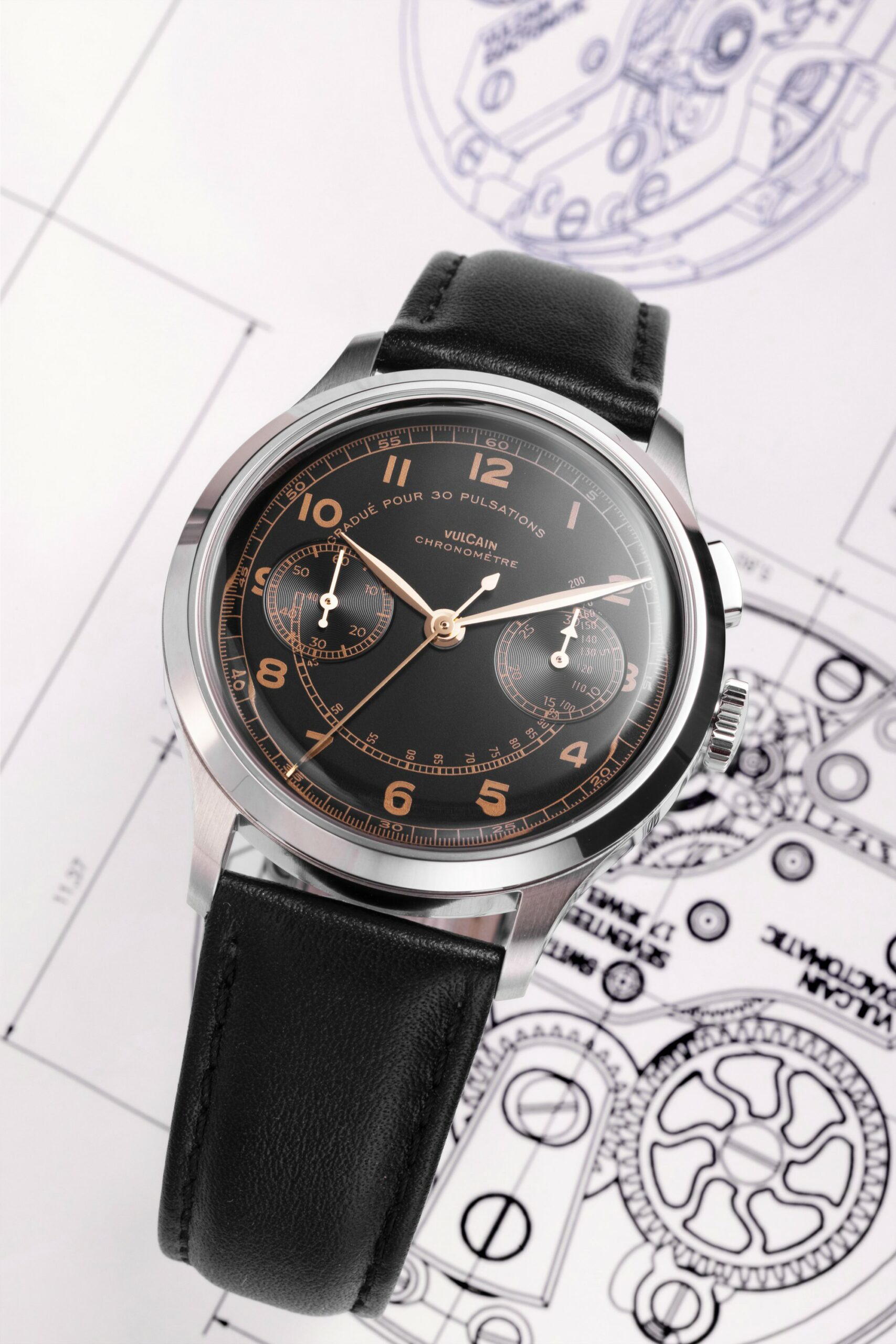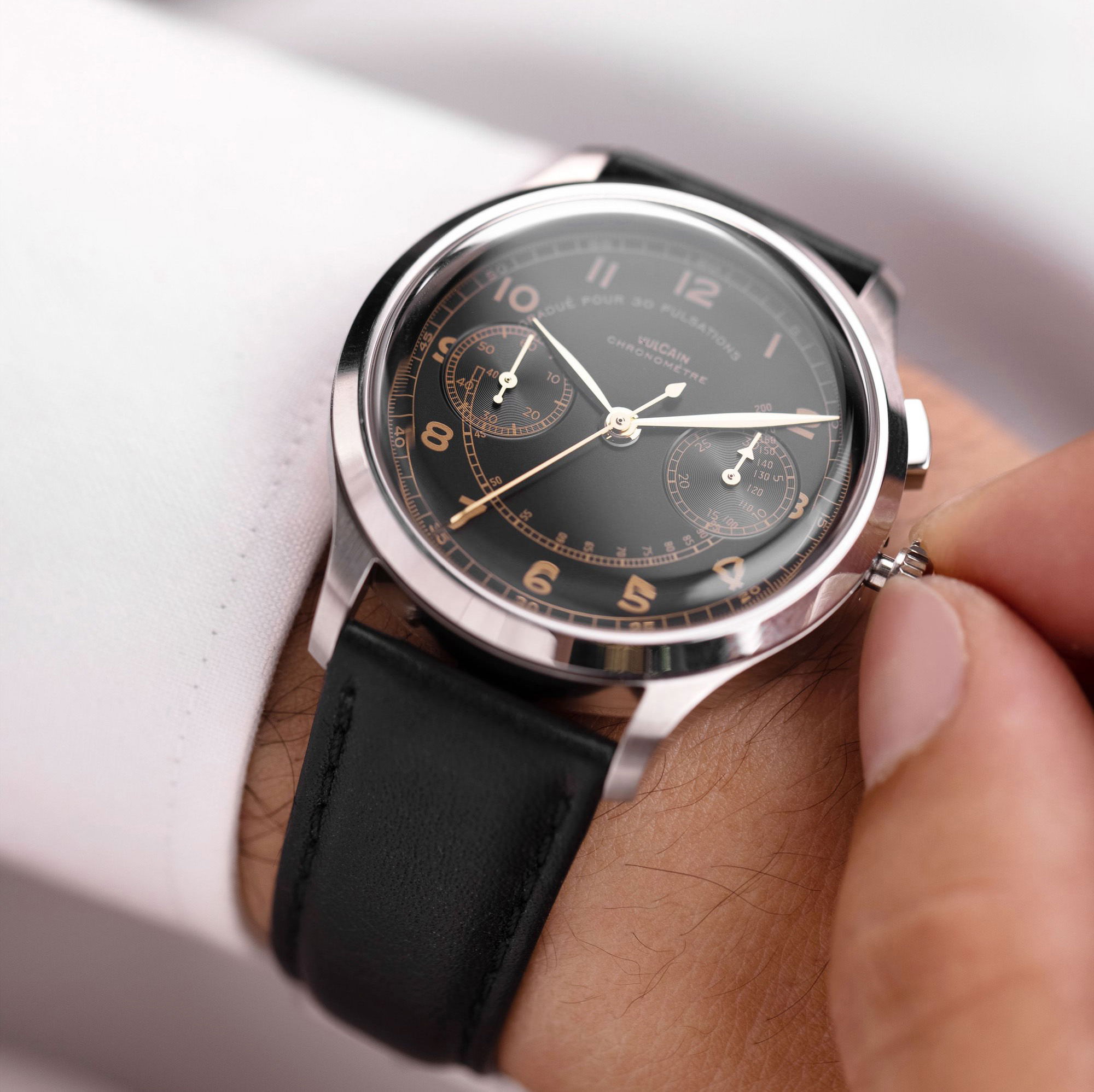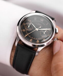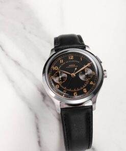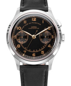 The Vulcain Monopusher is a reissue of the 1950s Chronograph Heritage, honoring the brand’s historical connection with Real Madrid. Vulcain, established in 1894, gained prominence in Spanish-speaking countries, partly due to the efforts of André Ditisheim’s grandson, André “Didixien” Ditisheim. A passionate athlete, Didixien played football for what would become Real Madrid, and in 1934, Vulcain became the official timekeeper for the team. This new version of the Monopusher features a 39mm steel case, available in two versions, including one limited edition of 50 pieces each. The design stays true to the original, with identical numerals and hour-markers. The dial, under the Vulcain emblem at 12 o’clock, is labeled ‘Chronomètre’ and includes a pulsometer scale marked ‘Graduated for 30 pulsations’. The major update is its movement, now powered by the SELLITA SW 510 manual caliber. This timepiece pays homage to Vulcain’s sports legacy and its pivotal role in precision timekeeping in football history.