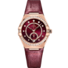 This 34 mm model in 18K Sedna™ gold features a diamond-paved bezel, sun-brushed burgundy dial and a round date window at the 6 o’clock position. The incremental diamond hour markers are presented in 18K Sedna™ gold holders, while the Small Seconds subdial and Central Minute Track rings are also crafted in 18K Sedna™ gold and set with diamonds.
