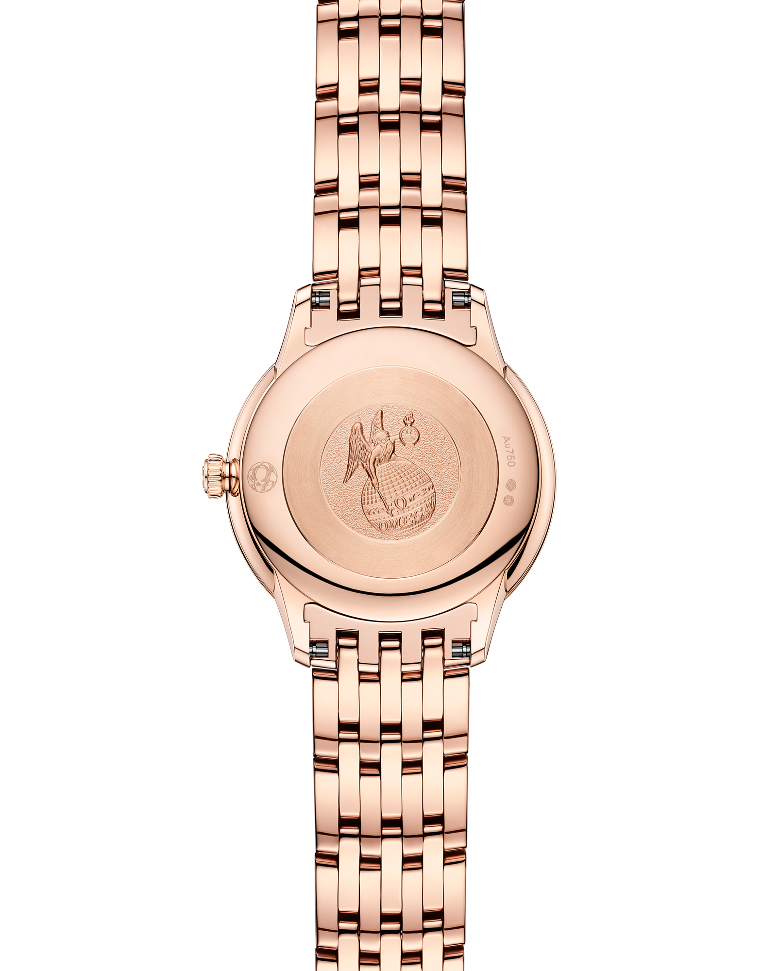 This watch is presented on an 18K Sedna™ Gold bracelet and is driven by the OMEGA Quartz Calibre 4061, with a battery life of at least 48 months.
