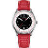 This 39.5 mm model has a stainless steel case and a black, micro-perforated leather strap. The domed black and white dial includes sporty hands, a date window and an easy-to-read minute track, as well as a black pulse reader that enables the wearer to calculate their pulse beats-per-minute.