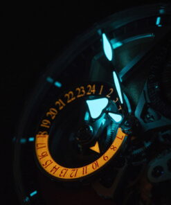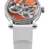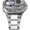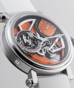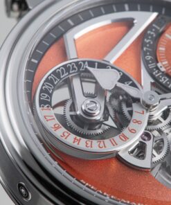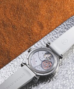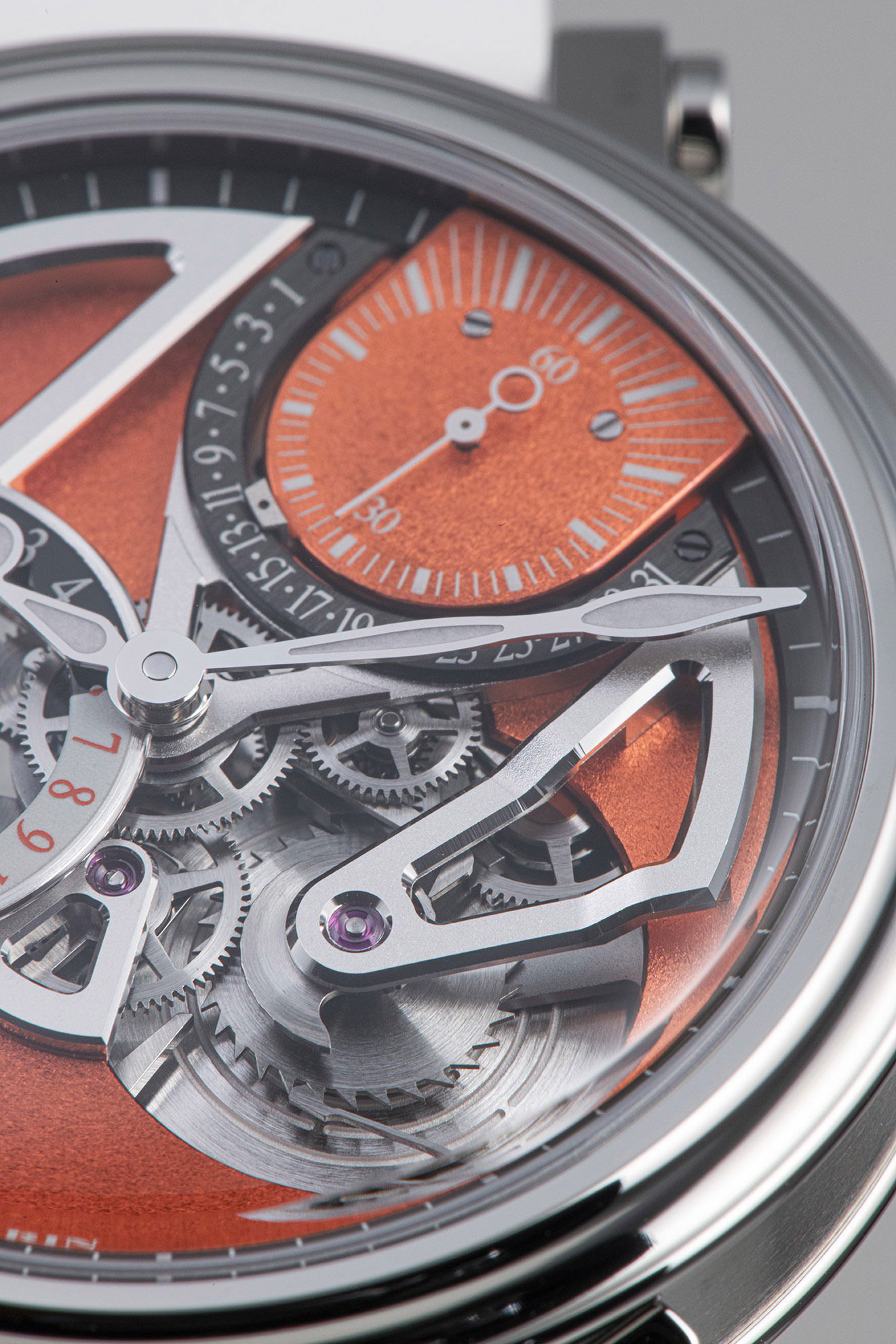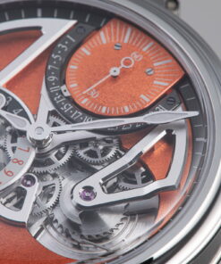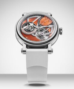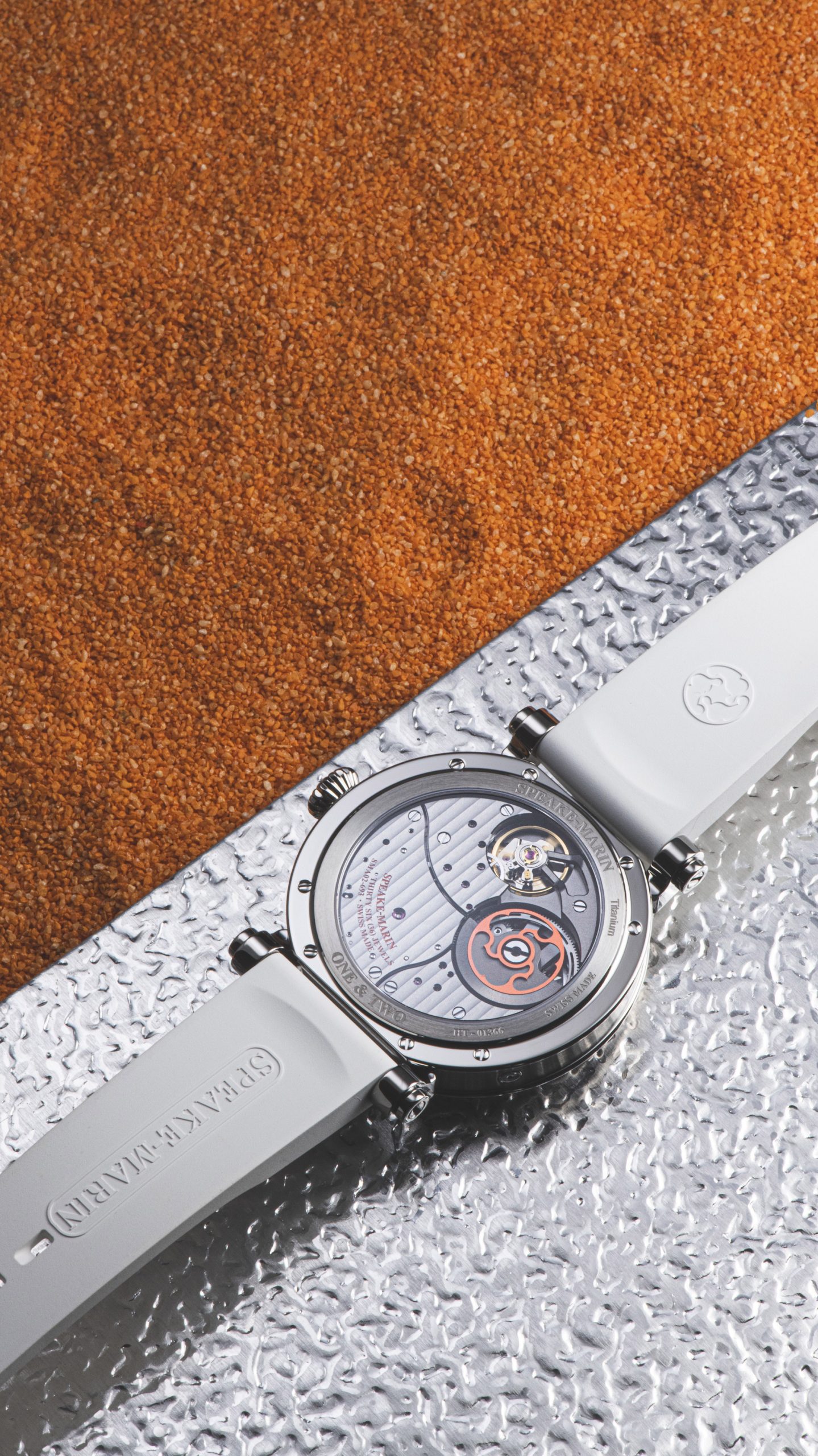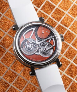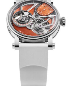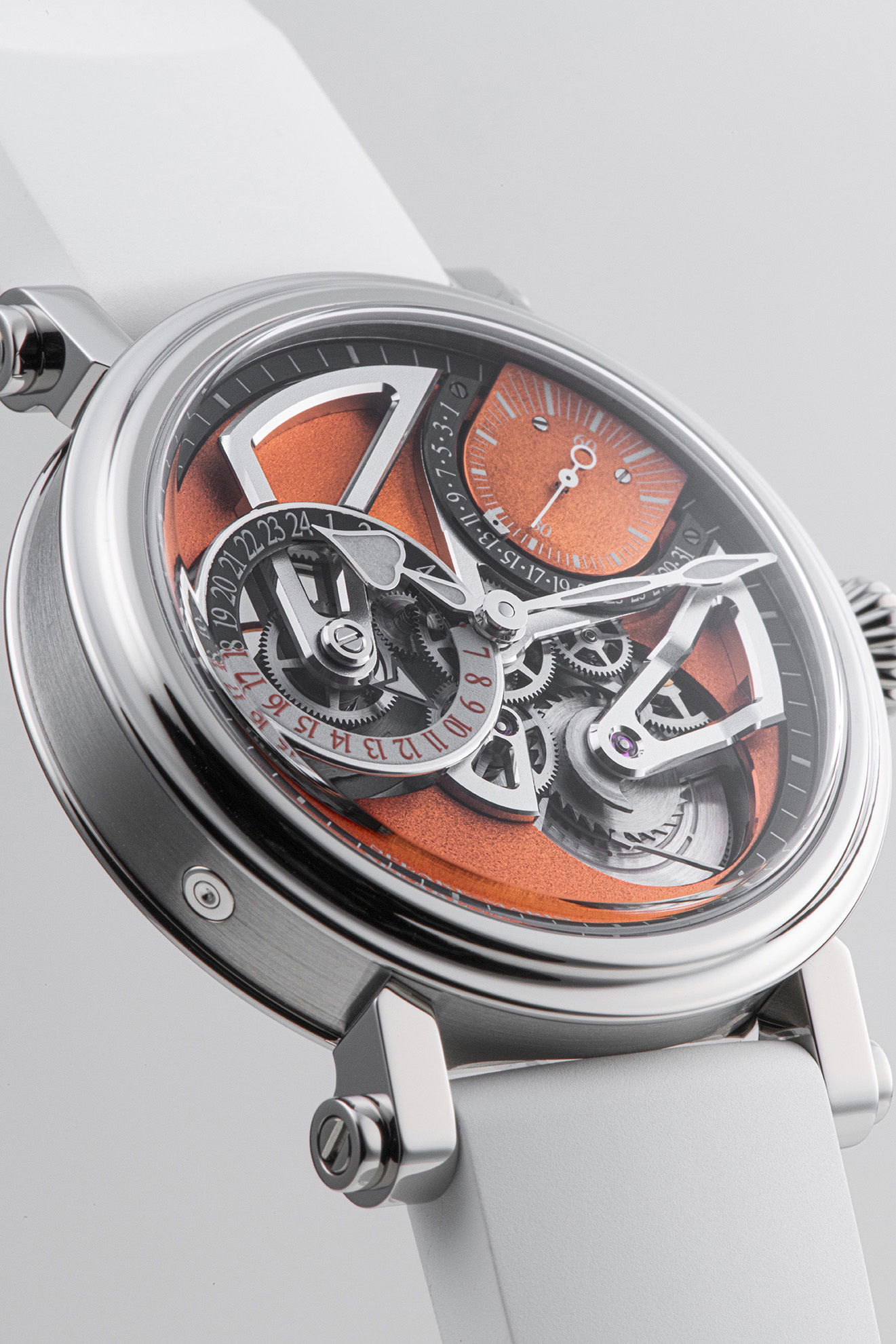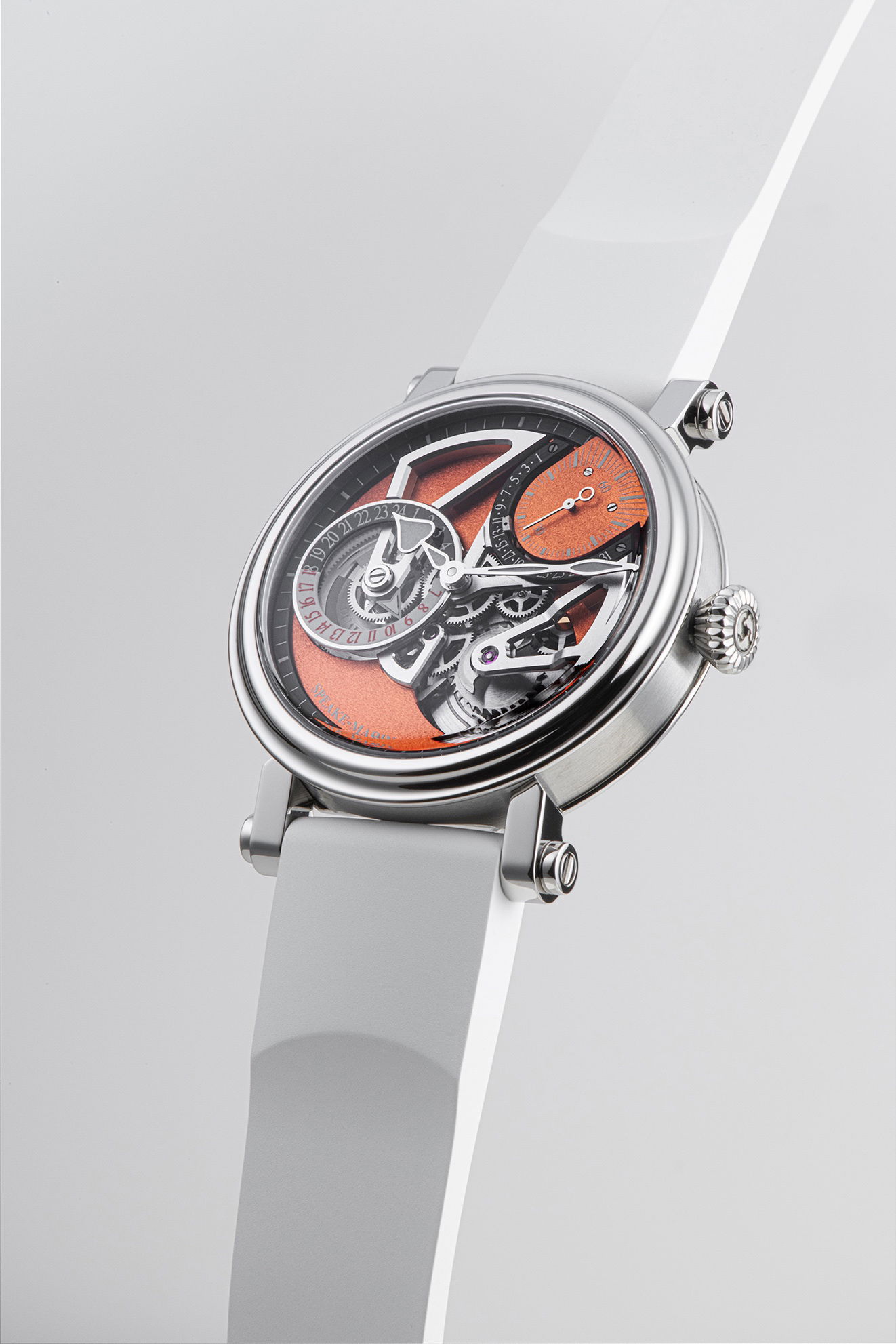 The One & Two Openworked Collection by Speake Marin features distinctive openworked dials that expose the intricate components of the manufacture movement, highlighting the micro-mechanics within a striking architectural design. The collection’s models showcase large apertures and skeletonized bridges, creating a multi-layered, three-dimensional structure enhanced by a small seconds counter at 1:30 o’clock. This display is framed by the iconic Piccadilly case, revamped in 2017 by Eric Giroud to combine sinuous lines with a contemporary look. The Openworked Dual Time Terracotta draws inspiration from evocative natural landscapes, such as the Grand Canyon and the Luberon in France. Its warm terracotta hue, achieved through a positive PVD coating, reflects a sophisticated style suitable for various occasions. The grade 5 titanium Piccadilly case is lightweight and comfortable, with a modern design featuring a domed bezel, flared and grooved crown, and geometric lugs securing the rubber strap. The 3D dial architecture is built on multiple levels, featuring frosted hand finishes, rhodium-plated bridges, and a two-tone home time display emphasizing the day/night function. Super-LumiNova accents provide visibility in low-light conditions. The calibre SMA02, a self-winding mechanical movement with second time-zone and retrograde date functions, powers the watch. It includes 273 parts, a 52-hour power reserve, and exceptional decorative finishes such as Geneva stripes and polished bevelled profiles. The Openworked Dual Time Terracotta is a limited production model available in 38mm and 42mm titanium cases.
