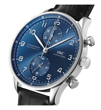 The harmoniously designed chronograph with its peripheral precision scale and recessed totalizers has been the most coveted member of the Portugieser family since 1998.