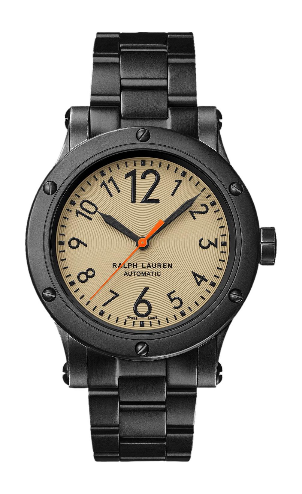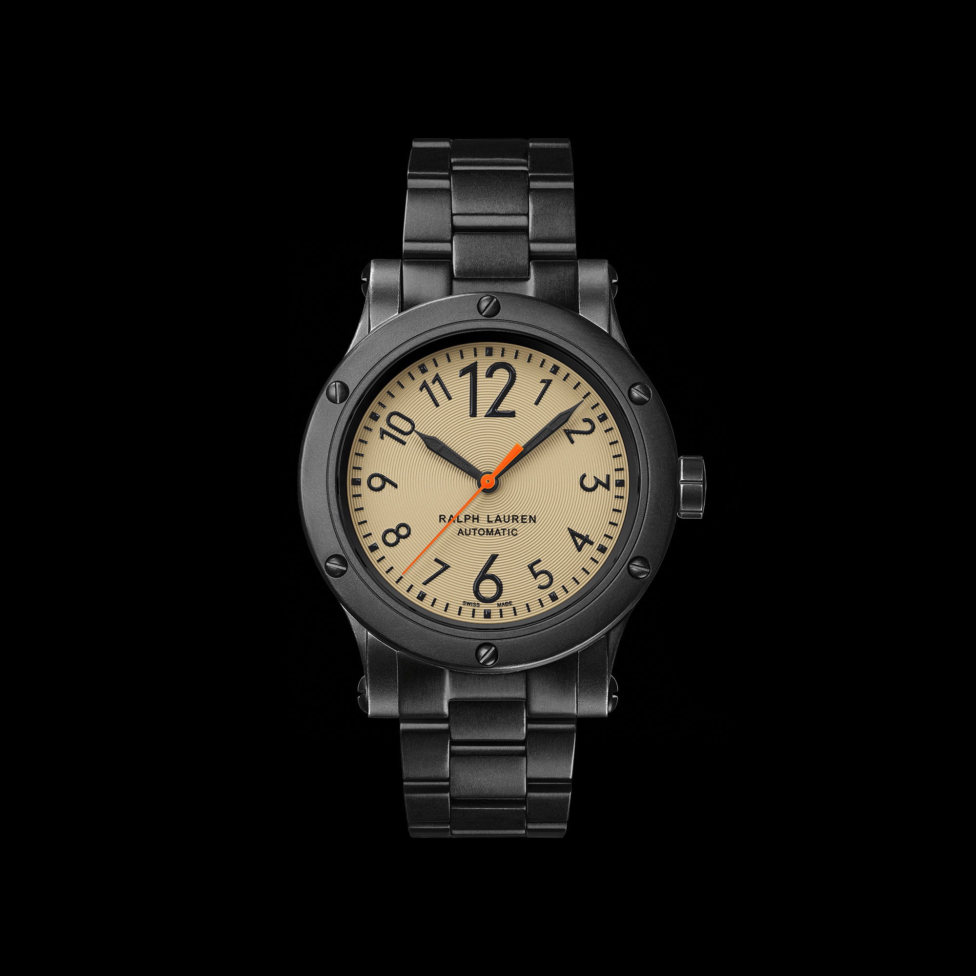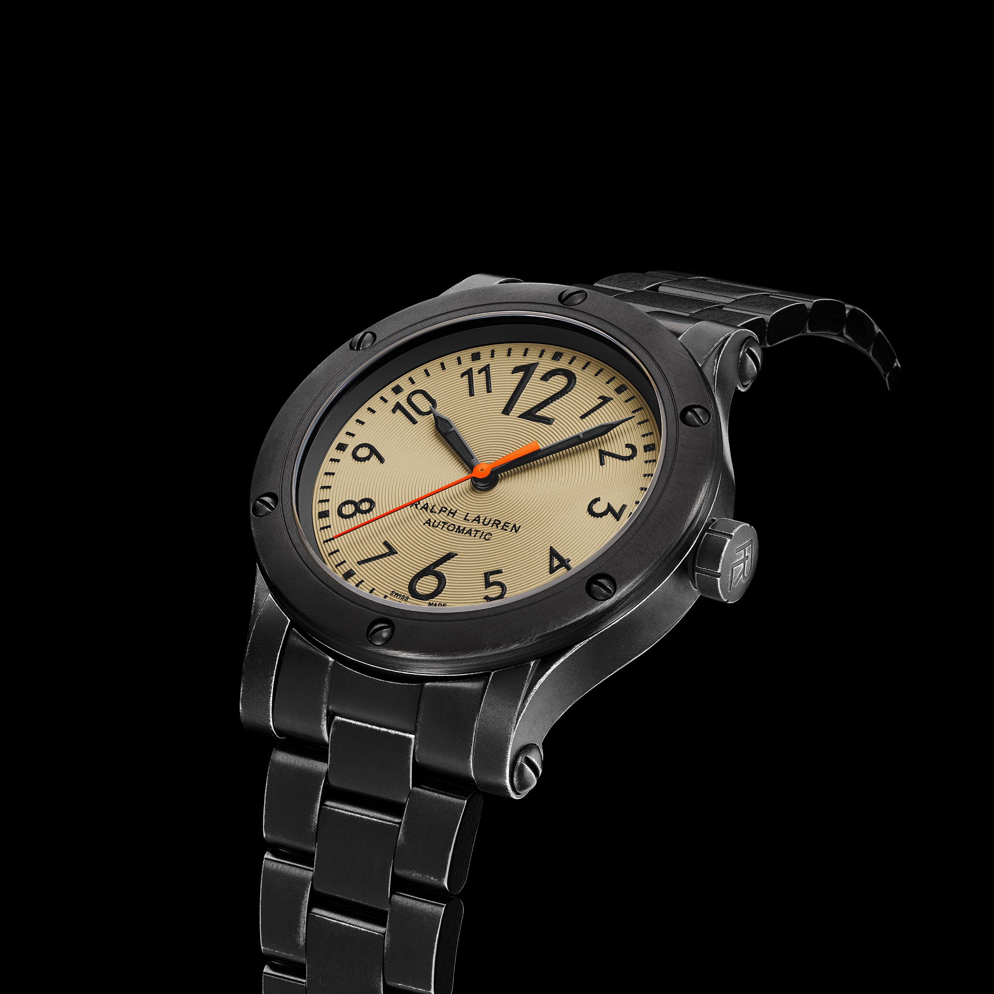 The Ralph Lauren Safari Chronometer, known for its robust design, is now available in three new dial colors: khaki, camouflage, or black. It embodies the adventurous essence of a sporting expedition combined with a touch of global sophistication. This year marks the introduction of the Safari Chronometer with a new 42 mm dial. Housed in durable black “aged” stainless steel, the watch features either a matte azuré anthracite dial with luminous, oversized Arabic numerals and a striking orange , or a green camouflage dial or a khaki dial. It is available with either a weathered dark brown leather strap, a green canvas strap, or a black stainless steel three-link bracelet, lending it a retro-inspired charm. Powered by a self-winding RL300-1 caliber mechanical movement, this “aged”-steel watch offers a 50-hour power reserve and is water resistant to 100 meters. The Ralph Lauren Safari Chronometer celebrates the Ralph Lauren safari ethos and the adventurous spirit of the globetrotter.
