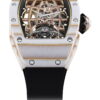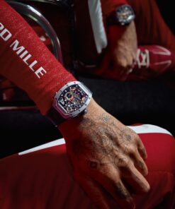 Richard Mille’s latest creation, the RM 43-01 Tourbillon Split-Seconds Chronograph Ferrari, is a visceral demonstration of what happens when two giants—Ferrari and Richard Mille—join forces with a shared obsession for performance and innovation. Following the ultra-thin marvel that was the RM UP-01 in 2022, this second collaborative timepiece ups the ante dramatically, marrying one of haute horology’s most challenging complications with an automotive design language honed in the crucible of Maranello. The result? A technical powerhouse with unmistakable Ferrari DNA running through its veins. Offered in two sharply contrasting limited editions—75 in microblasted and polished grade 5 titanium with a Carbon TPT® caseband, and 75 in full Carbon TPT®—the RM 43-01 captures dual personalities: the refined gentleman driver and the adrenaline-fueled racer. Ferrari’s Centro Stile was deeply embedded in the creative process, sculpting details like the crown, strap, and Prancing Horse-emblazoned titanium plate—its shape a direct nod to the rear wing of the 499P. The openworked dial mimics a Ferrari dashboard, while elements like angular bridges, raised ridges, and golden hex screws echo the muscular intricacies of Ferrari engine blocks. Beneath the dramatic exterior lies a movement that took three years to engineer from scratch. Developed in collaboration with Audemars Piguet Le Locle, the RM43-01 calibre is built around a highly skeletonised grade 5 titanium baseplate and fortified with bridges in both titanium and Carbon TPT®. It offers 70 hours of power reserve and houses innovations like an off-centre tourbillon, a torque indicator, and a kinetic seconds display with rotating radial blades. The split-seconds chronograph mechanism has been fine-tuned for energy efficiency and resilience through rigorous simulations and advanced component design. This is a three-dimensional, high-octane tribute to Ferrari’s legacy and Richard Mille’s unrelenting push toward the edge of watchmaking possibilities. Every line, material, and mechanism is shaped by performance-driven intent, resulting in a timepiece that doesn’t just measure time—it embodies it at full throttle.