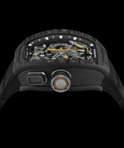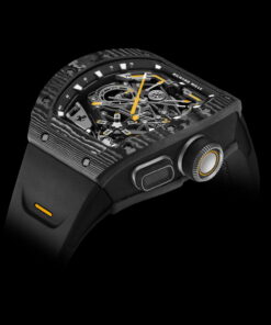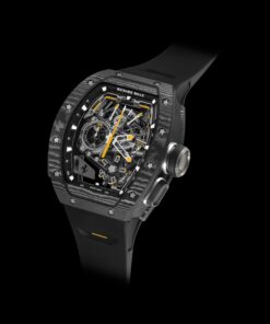 Richard Mille’s latest creation, the RM 43-01 Tourbillon Split-Seconds Chronograph Ferrari, is a visceral demonstration of what happens when two giants—Ferrari and Richard Mille—join forces with a shared obsession for performance and innovation. Following the ultra-thin marvel that was the RM UP-01 in 2022, this second collaborative timepiece ups the ante dramatically, marrying one of haute horology’s most challenging complications with an automotive design language honed in the crucible of Maranello. The result? A technical powerhouse with unmistakable Ferrari DNA running through its veins. Offered in two sharply contrasting limited editions—75 in microblasted and polished grade 5 titanium with a Carbon TPT® caseband, and 75 in full Carbon TPT®—the RM 43-01 captures dual personalities: the refined gentleman driver and the adrenaline-fueled racer. Ferrari’s Centro Stile was deeply embedded in the creative process, sculpting details like the crown, strap, and Prancing Horse-emblazoned titanium plate—its shape a direct nod to the rear wing of the 499P. The openworked dial mimics a Ferrari dashboard, while elements like angular bridges, raised ridges, and golden hex screws echo the muscular intricacies of Ferrari engine blocks. Beneath the dramatic exterior lies a movement that took three years to engineer from scratch. Developed in collaboration with Audemars Piguet Le Locle, the RM43-01 calibre is built around a highly skeletonised grade 5 titanium baseplate and fortified with bridges in both titanium and Carbon TPT®. It offers 70 hours of power reserve and houses innovations like an off-centre tourbillon, a torque indicator, and a kinetic seconds display with rotating radial blades. The split-seconds chronograph mechanism has been fine-tuned for energy efficiency and resilience through rigorous simulations and advanced component design. This is a three-dimensional, high-octane tribute to Ferrari’s legacy and Richard Mille’s unrelenting push toward the edge of watchmaking possibilities. Every line, material, and mechanism is shaped by performance-driven intent, resulting in a timepiece that doesn’t just measure time—it embodies it at full throttle.