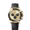 This Oyster Perpetual Cosmograph Daytona in 18 ct yellow gold, with a golden, diamond-set dial and contrasting counter rings, features an Oysterflex bracelet as well as a diamond-set bezel and diamond-set lugs.