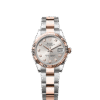 This Oyster Perpetual Datejust 31 in Oystersteel and Everose gold features a slate, diamond-set dial and an Oyster bracelet.