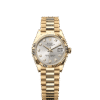 This dial features diamonds in 18 ct gold settings. The sunray finish creates delicate light reflections on many dials in the Oyster Perpetual collection. It is obtained using masterful brushing techniques that create grooves running outwards from the centre of the dial.