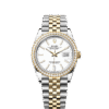 This Oyster Perpetual Datejust 36 in Oystersteel and Everose gold features a white dial and an Oyster bracelet.