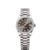 This Oyster Perpetual Datejust 36 in Oystersteel and Everose gold features a slate, diamond-set dial and an Oyster bracelet.