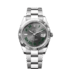 This Oyster Perpetual Datejust 36 in Oystersteel and white gold features a mint green dial and an Oyster bracelet.