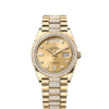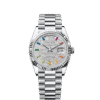 It was therefore identical to the fluting on the case back, which was also screwed onto the case for waterproofness, using specific Rolex tools. Over time, the fluting became an aesthetic element, a genuine Rolex signature feature. Today the fluted bezel is a mark of distinction, in platinum on this Day-Date 40.