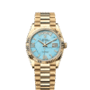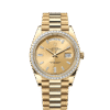 It was therefore identical to the fluting on the case back, which was also screwed onto the case for waterproofness, using specific Rolex tools. Over time, the fluting became an aesthetic element, a genuine Rolex signature feature. Today the fluted bezel is a mark of distinction, in gold on this Day-Date 40.