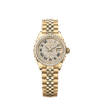 This dial features diamonds in 18 ct gold settings and a Roman IX in 18 ct gold, set with 8 diamonds. The sunray finish creates delicate light reflections on many dials in the Oyster Perpetual collection. It is obtained using masterful brushing techniques that create grooves running outwards from the centre of the dial.