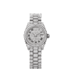 This Oyster Perpetual Lady-Datejust in Oystersteel and Everose gold features a chocolate dial and an Oyster bracelet.