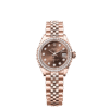 This Oyster Perpetual Lady-Datejust in Oystersteel and Everose gold features a chocolate, diamond-set dial and an Oyster bracelet.