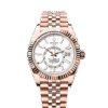 The Sky-Dweller is fitted on a solid-link Oyster bracelet in Oystersteel, in the case of the white Rolesor version, or, for the yellow Rolesor version, an Oyster bracelet combining Oystersteel and yellow gold.
