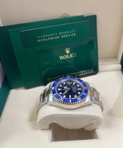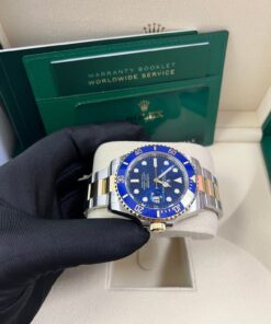 The Oyster Perpetual Submariner Date in Oystersteel and yellow gold with a Cerachrom bezel insert in blue ceramic and a royal blue dial with large luminescent hour markers.