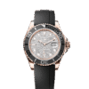 The Yacht-Master’s new Oysterflex bracelet, developed by Rolex and patented, offers a sporty alternative to metal bracelets. The bracelet attaches to the watch case and the Oysterlock safety clasp by a flexible titanium and nickel alloy metal blade.