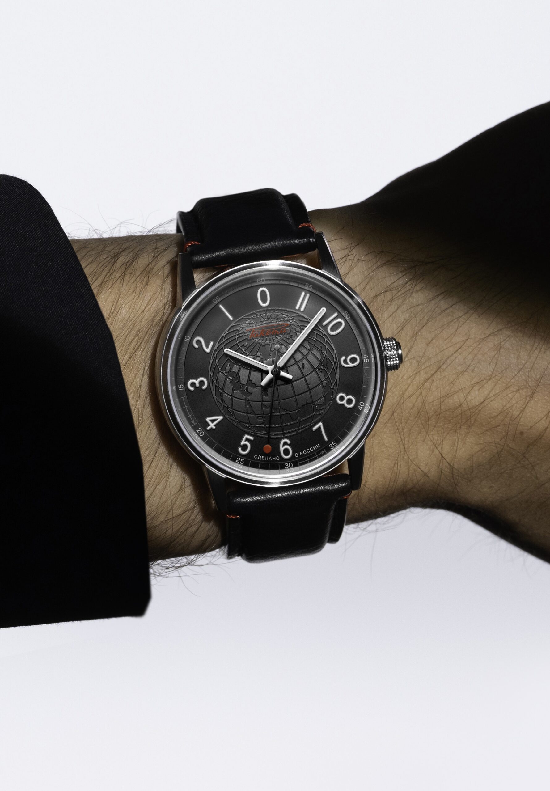Ready to make a shift with this counterclockwise timepiece? Step into the next generation of watches, where time marches to the cosmic beat. Wearing this watch means breaking free from the age-old rule of reading time through clockwise motion. Beneath its classic façade and subtle design lies a revolutionary idea: time should flow in tune with the counterclockwise dance of the planets in our solar system. Take note that the , featuring the Moon, also traces an unconventional path around the central Earth on the watch’s face. Peek through the case back, and you’ll discover an exquisitely crafted automatic movement, meticulously manufactured and assembled at the Raketa Watch Factory in Saint-Petersburg.