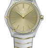 Men’s EBEL Sport Classic watch, stainless steel case, Ø 40mm, silver galvanic dial with gun color-plated Roman numerals, sapphire crystal with antireflective treatment underneath, stainless steel wave link bracelet with a folding clasp, Swiss quartz movement, water-resistant up to 50 meters