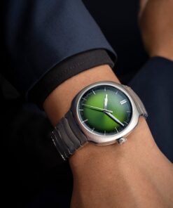 The Streamliner Centre Seconds Matrix Green, known as the “Green Dragon,” is making its much-anticipated return, accompanied by a new “Purple Haze” dial version. Originally released in 2020 and quickly gaining iconic status, H. Moser & Cie. paused orders to enhance its aesthetic and technical features. Updates include a transparent lacquer logo and self-winding calibre HMC 201. This three-hand watch, known for its precision and balanced proportions, features a cushion-shaped steel case (40.0 mm, water-resistant to 12 ATM) with an ergonomic, integrated steel bracelet. The design incorporates alternating brushed and polished surfaces, a domed sapphire crystal, and a see-through case back. The Matrix Green fumé dial, with its vibrant palette from olive green to red gold, complements the elegance of the case. “Purple Haze” dial offers an intense purple with blue reflections. Both dials feature the brand’s transparent lacquer logo and 3D hands with Globolight® inserts containing Super-LumiNova®. The watch is powered by the HMC 201 self-winding calibre, which updates the previous HMC 200. It features a wider opening with partially skeletonized bridges, an anthracite grey finish, and a bevelled rotor, allowing a clear view of the mechanism while maintaining a 3-day power reserve.